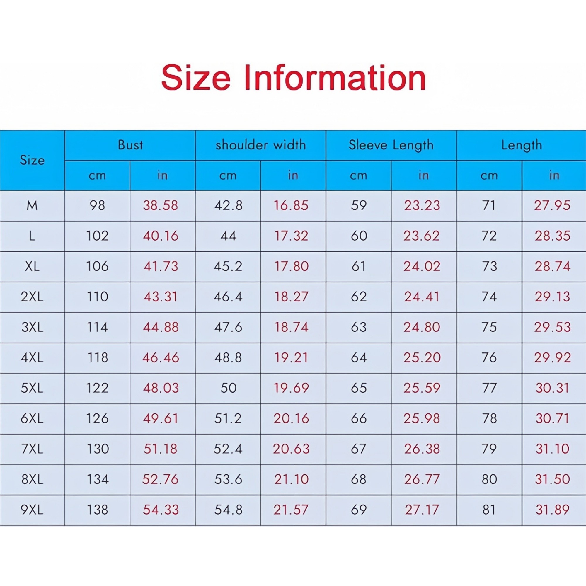Size: M~9XL